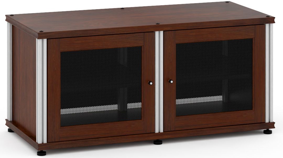 Salamander Designs® Synergy Model 221 AV Cabinet-Dark Walnut/Aluminum with leveling feet and perforated door panelsRead More