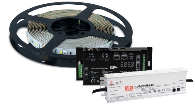 NOTE: Requires a DMX controller for control, each DMX controller can control up to 32 strips or fixtures