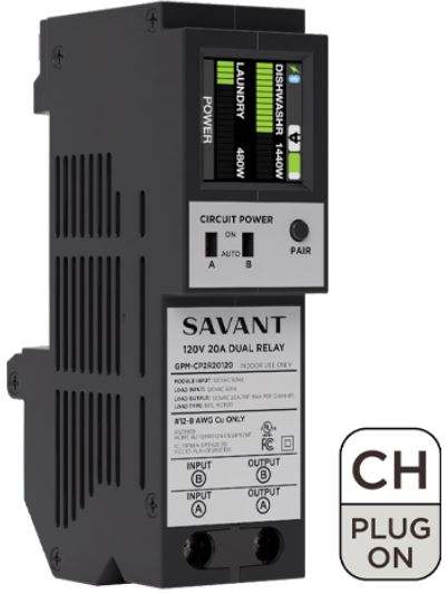Savant's Dual 20A Power Module (120V AC with Current Transformer - CH™ compatible with plug-on neutral) controls and monitors up to two 20 amp circuits; ideal for outlets, kitchen appliances, lighting, and more.Read More
